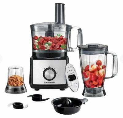 - Slicing, Shredding, Dough Kneading, Citrus Juicer, Blender, and Grinder